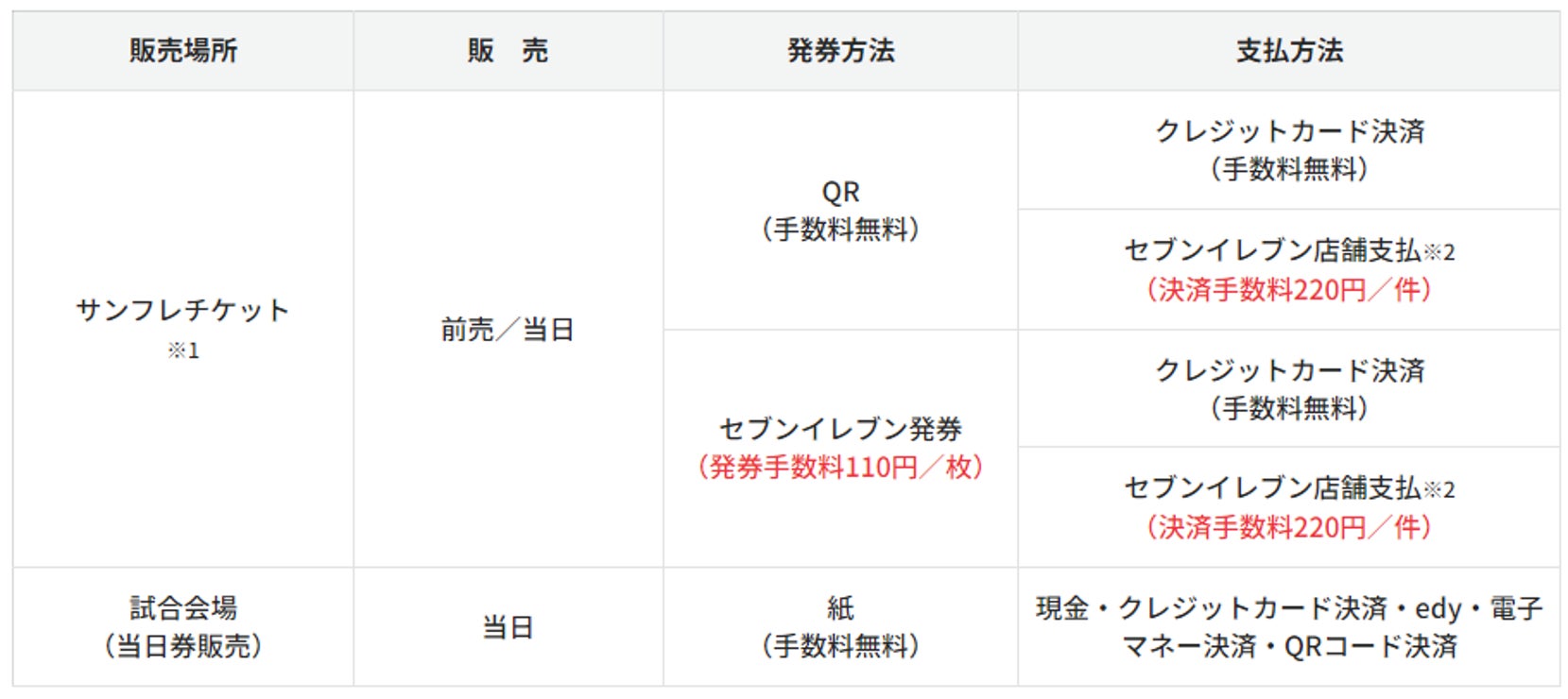 ※2 セブンイレブン店舗支払の期限を過ぎた場合、申込は無効となります。支払期限はサンフレチケットサイトの「購入完了メール」、「購入履歴」にてご確認いただけます。