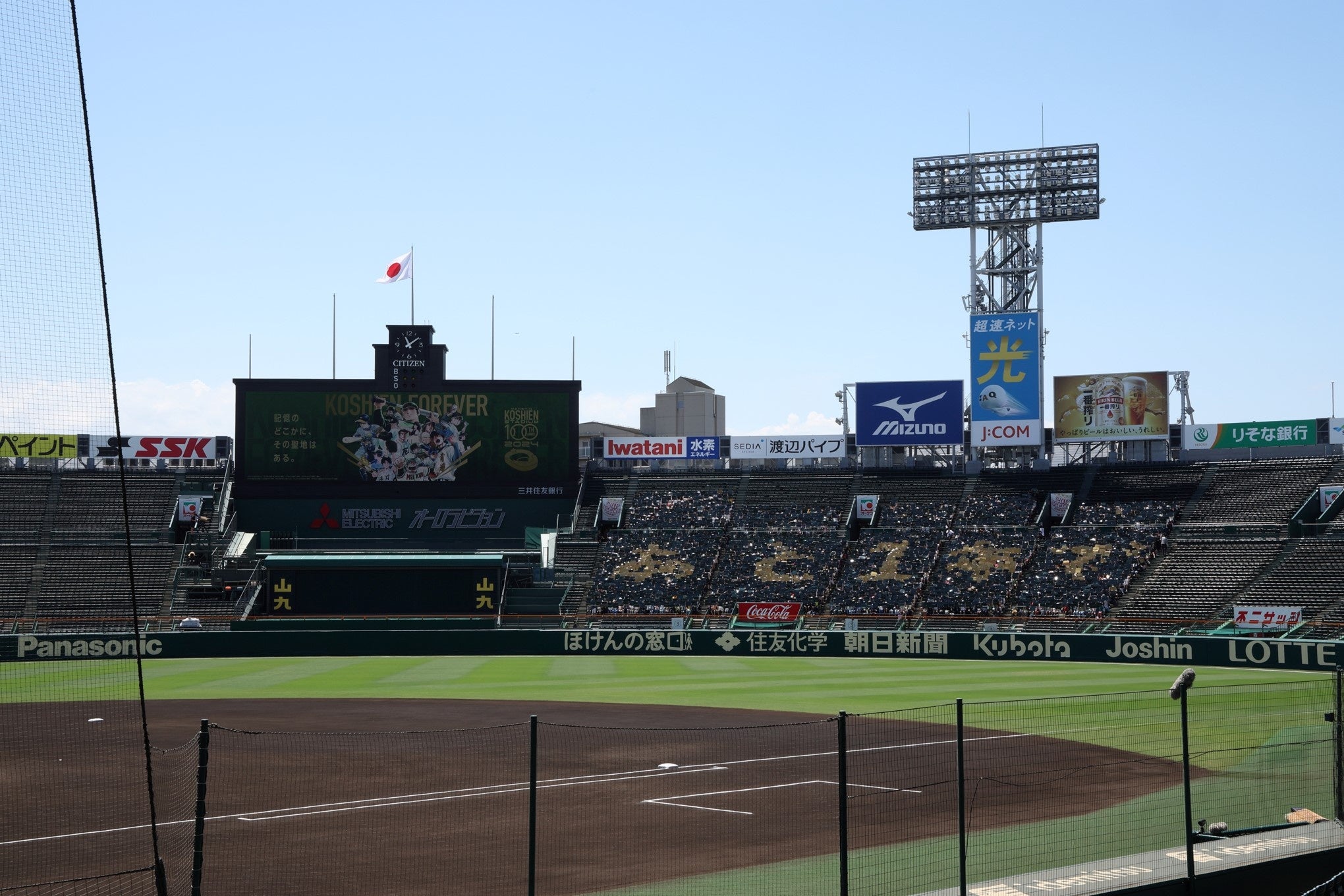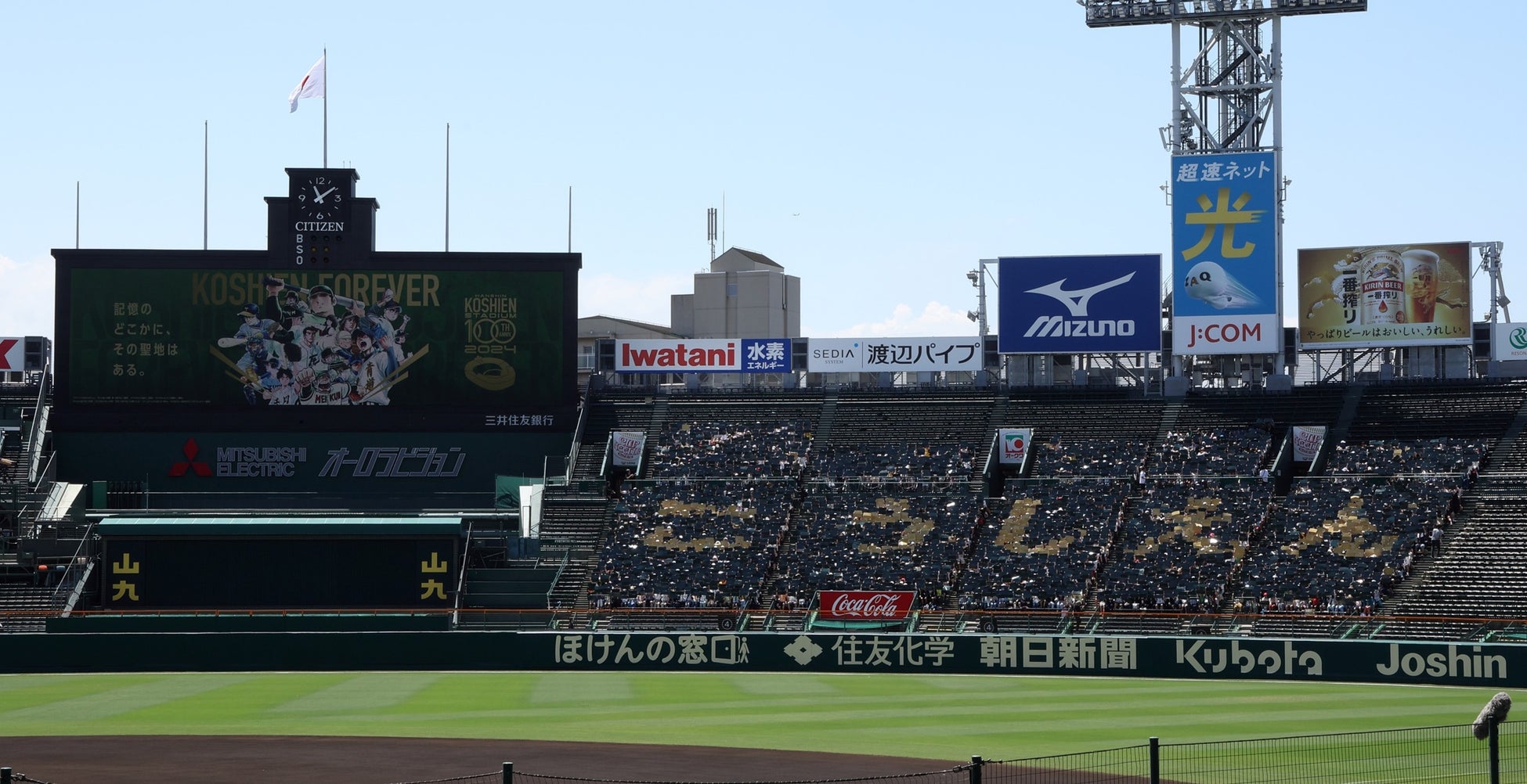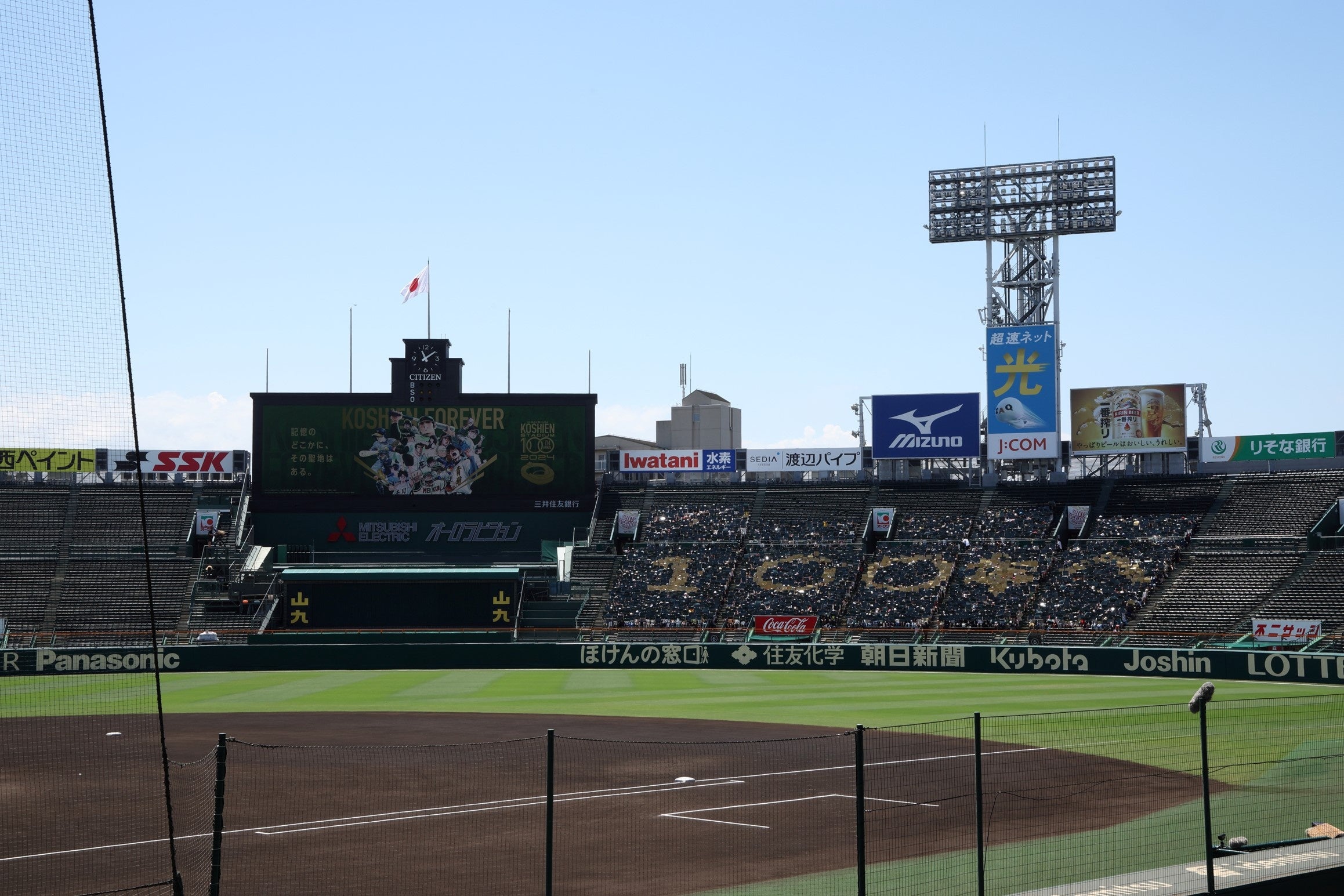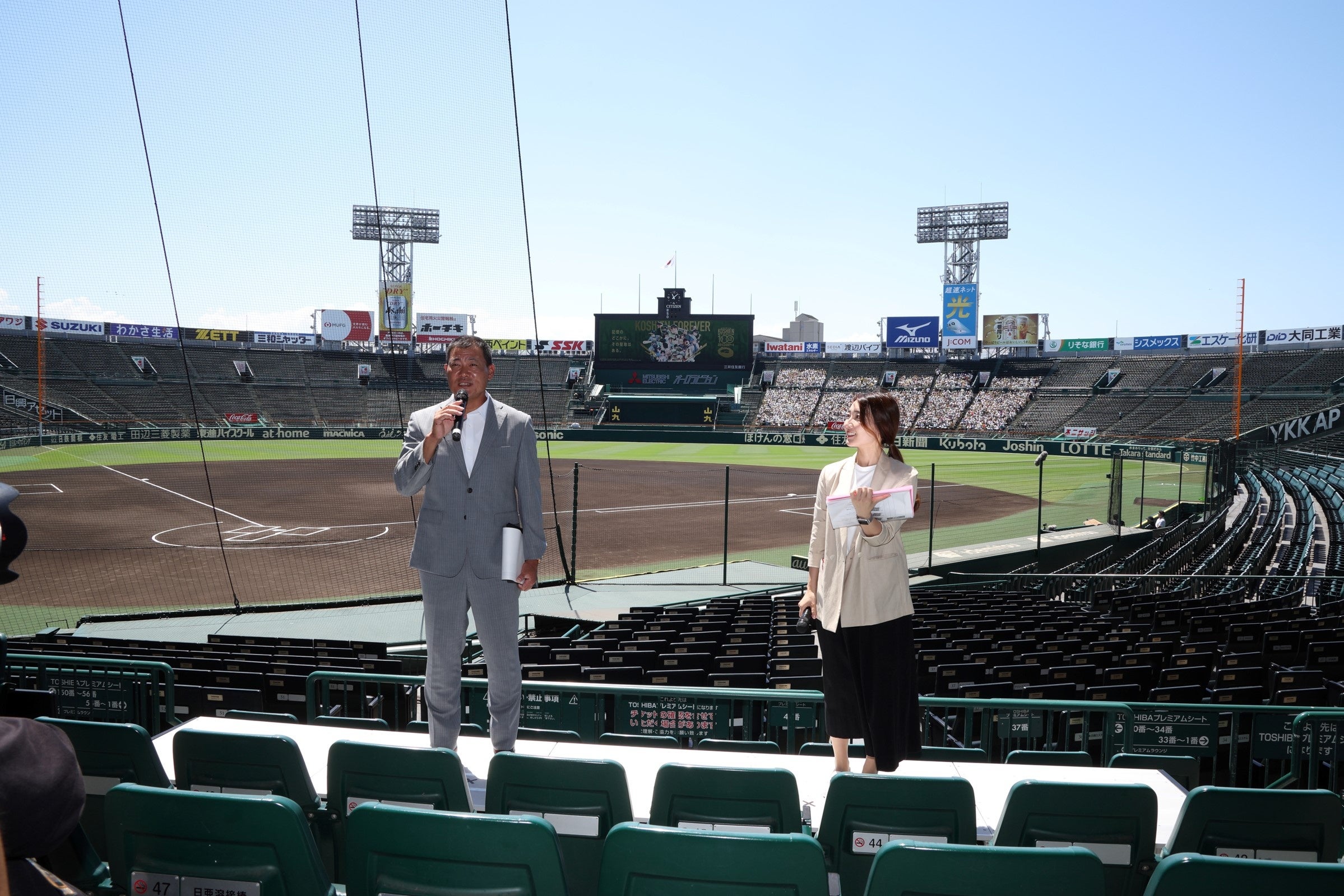 イベント後半には、初代スコアボードの書体を再現したカウントダウンボードがお披露目され、100周年を迎える2024年8月1日に向けたカウントダウンが開始されました。1塁側外周には、お披露目されたカウントダウンボードが設置されました。3塁側外周の「OBAYASHI-SITE」にも、2代目スコアボードの書体を再現したカウントダウンボードが登場しました。