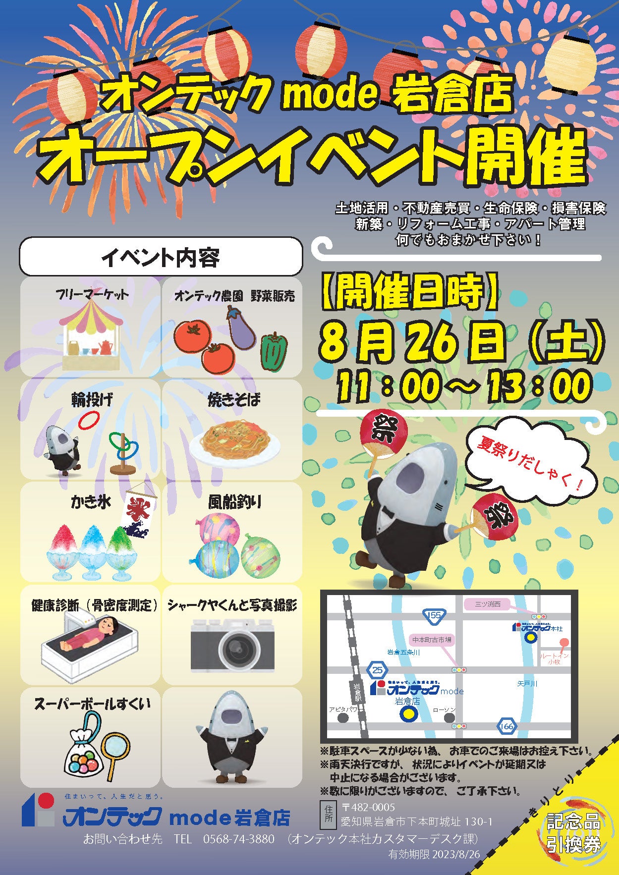株式会社オンテックは建物管理・賃貸不動産業を中心に愛知・岐阜・三重・滋賀・長野・静岡に18店舗を展開しており、この度新事業のオンテックmode岩倉店では、お部屋探しだけではない地域の相談窓口として、相続や生命保険の見直しなど、住まいに関する多種多様なお困りごと、お悩みごと等を気軽に相談できる店舗として、オープン致します。