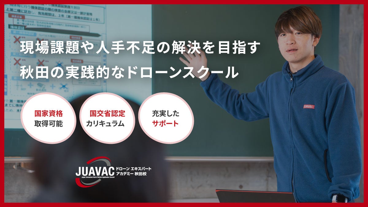 JUAVACドローンエキスパートアカデミー秋田校、国家資格対応コースやICT施工導入特化コースを含む5コースを新たに開設!ドローン人材の育成を通して、企業の人手不足と現場課題の解決を目指します。