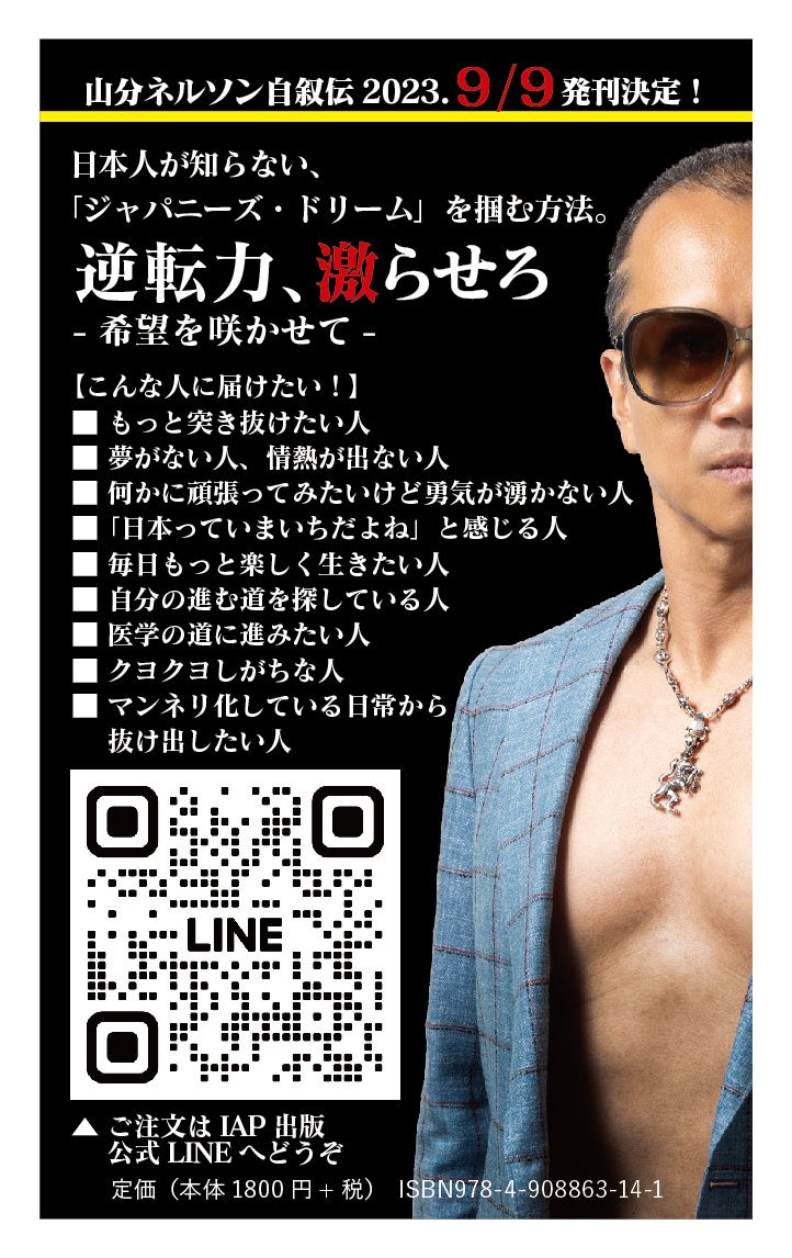 山分ネルソン氏、波乱万丈の自叙伝『日本人が知らない 「ジャパニーズ・ドリーム」を掴む方法。逆転力、激らせろ ー希望を咲かせてー』9月9日(土) 発刊