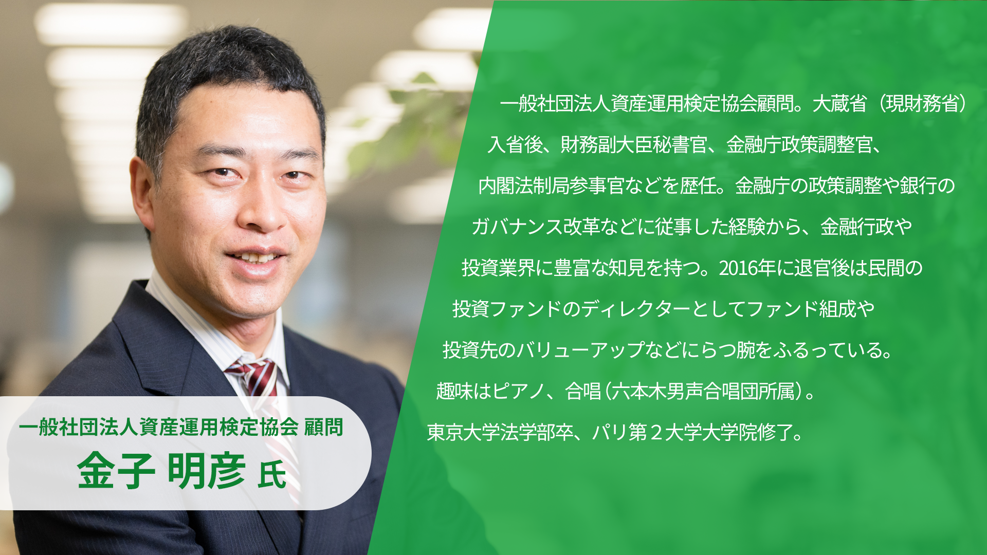 一般社団法人資産運用検定協会 顧問 金子明彦氏