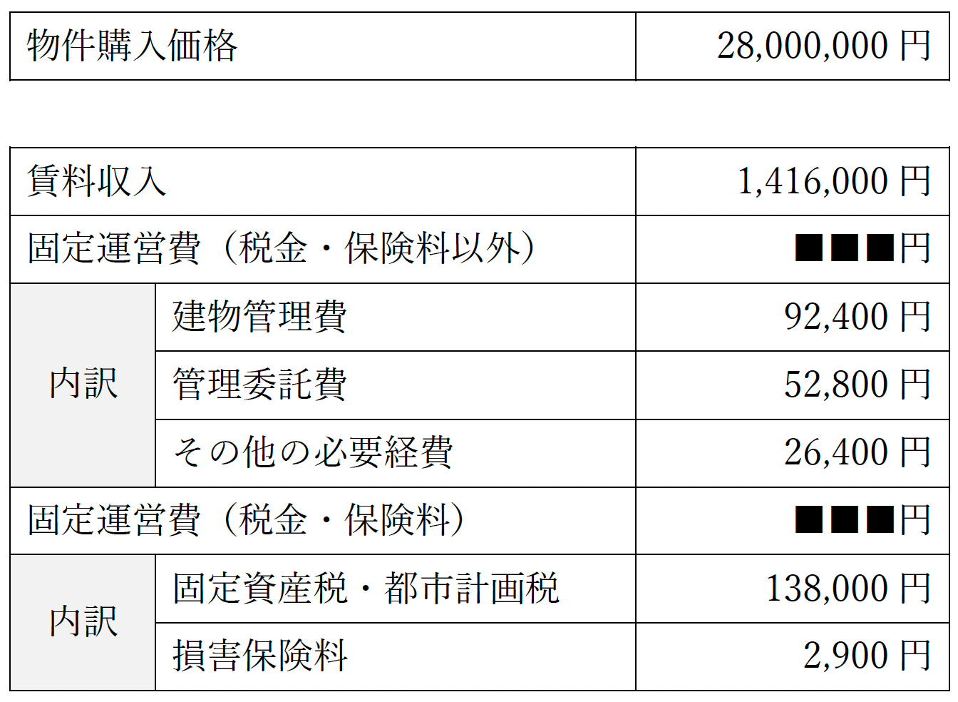 ② 固定運営費(税⾦・保険料) 138,000円+2,900円 = 140,900円