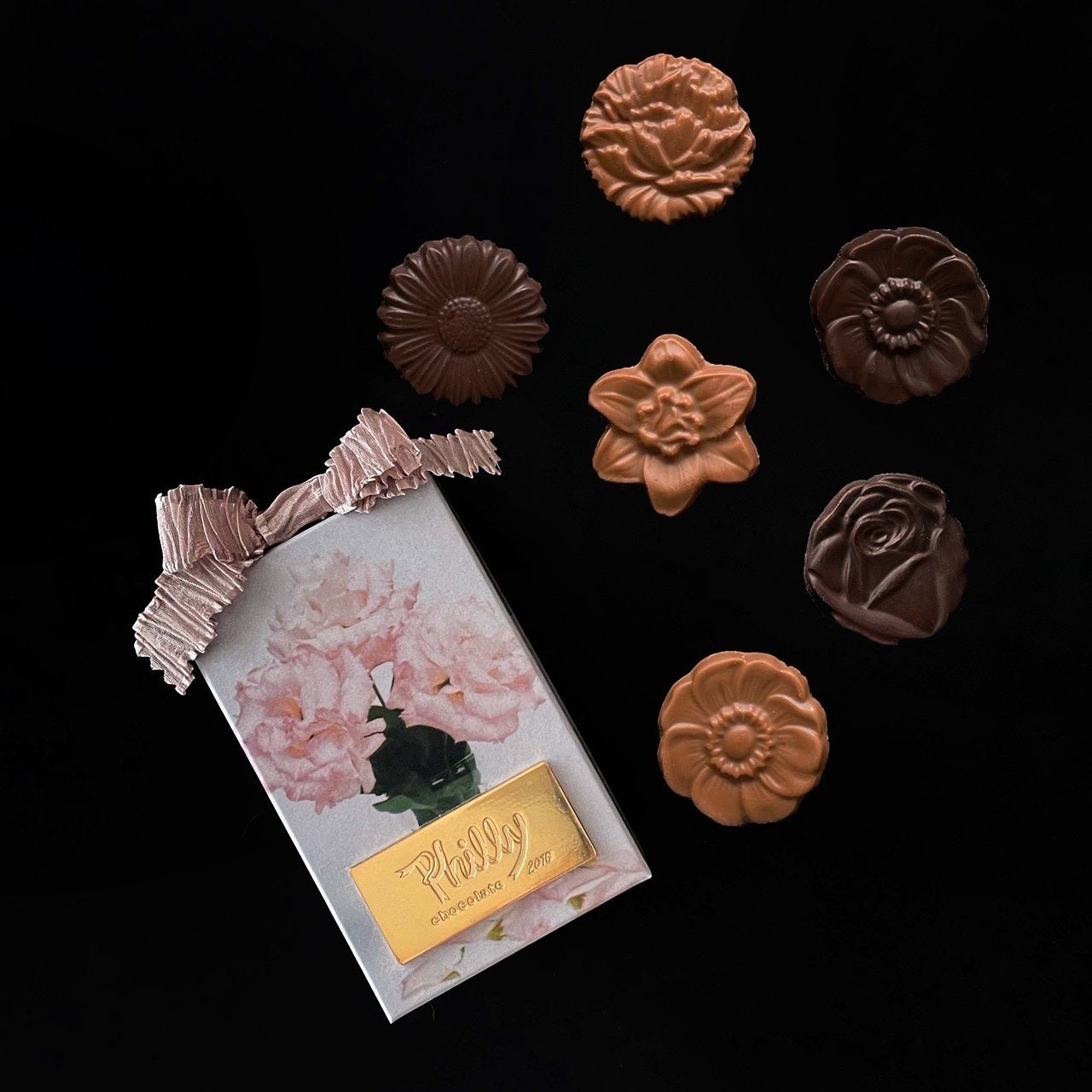 可愛いお花柄は、フィリーチョコレートの定番商品「フラワーチョコレートシリーズ」のBOXとリンク。