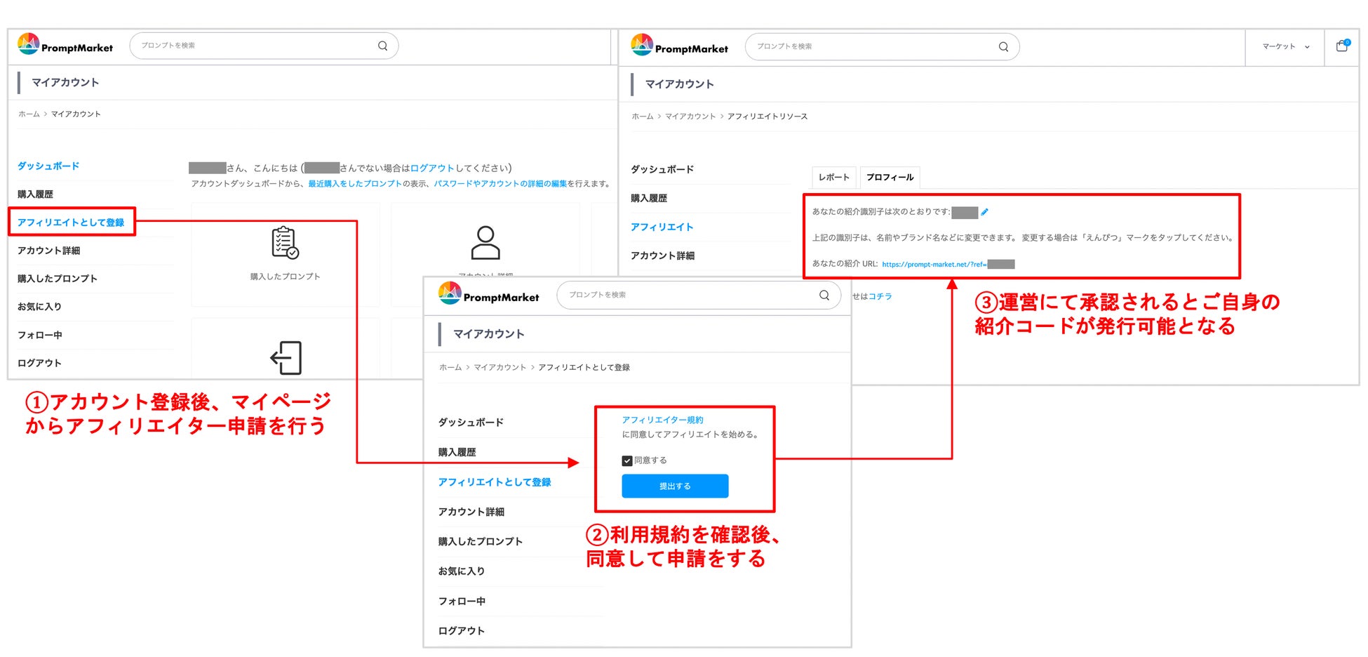 プロンプトマーケットは他社にはない紹介アフィリエイト制度を導入しています。