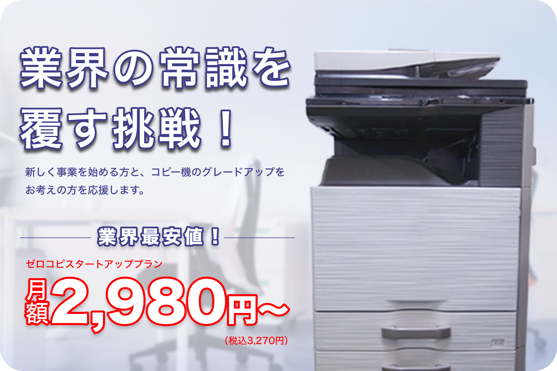 キャンペーン期間中に大型コピー機レンタル『ZEROコピ』の設置が完了したお客様を対象とします。