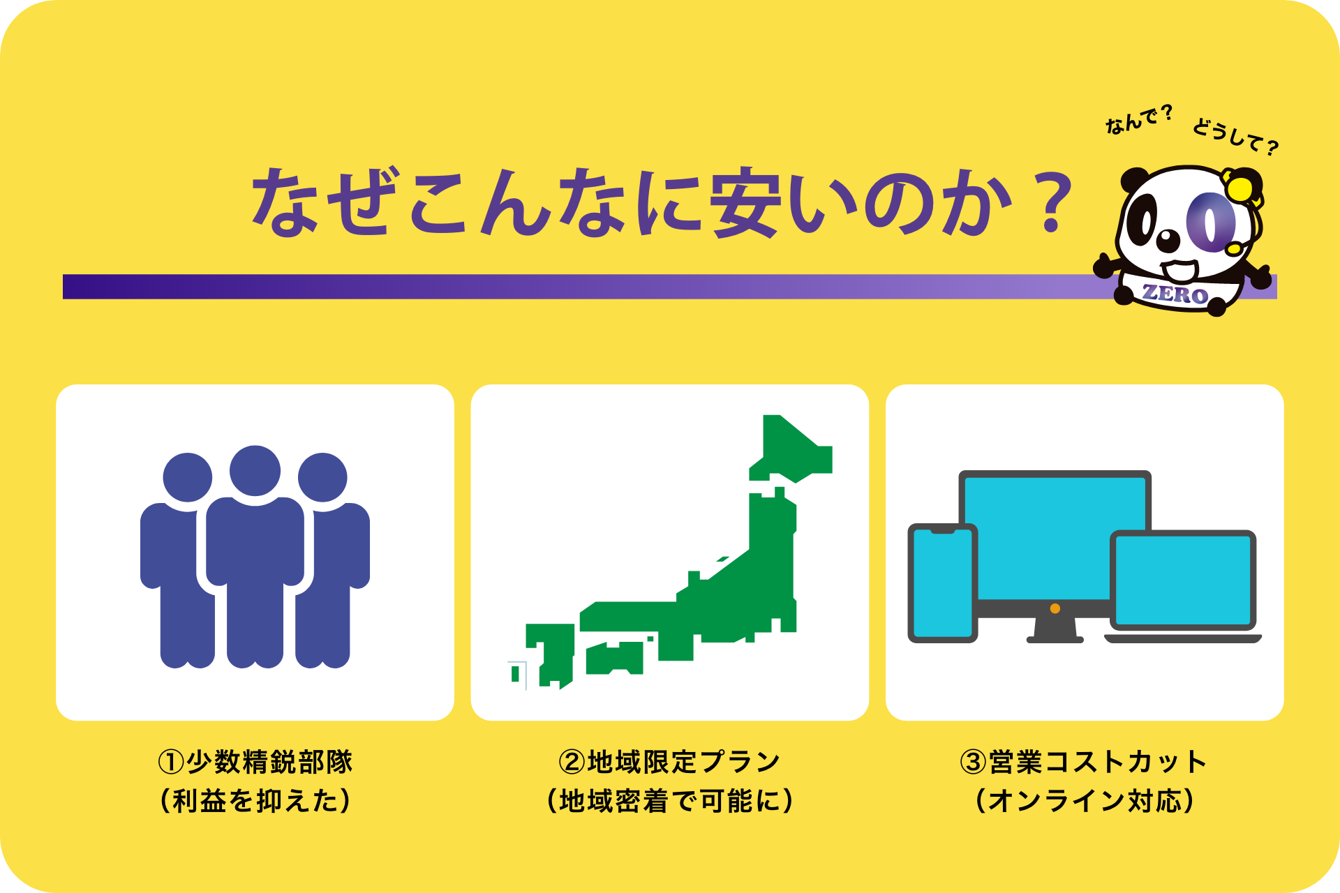 ZEROコピではオンライン対応する事により、営業コストを抑えました。