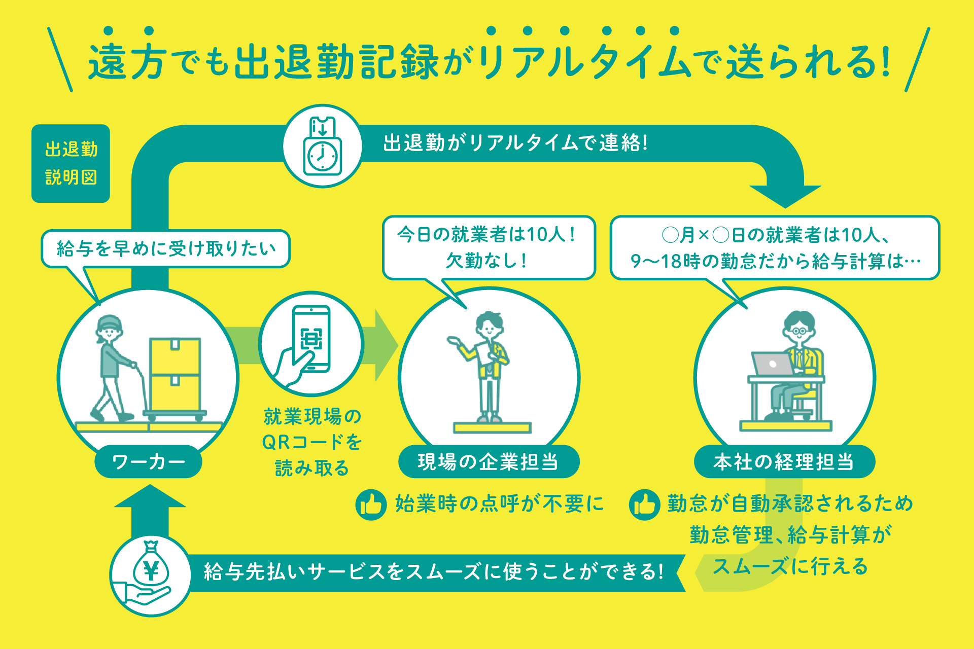ワーカーにとっては勤怠承認が早くなることで、給与の先払い申請をすぐに行うことができます。