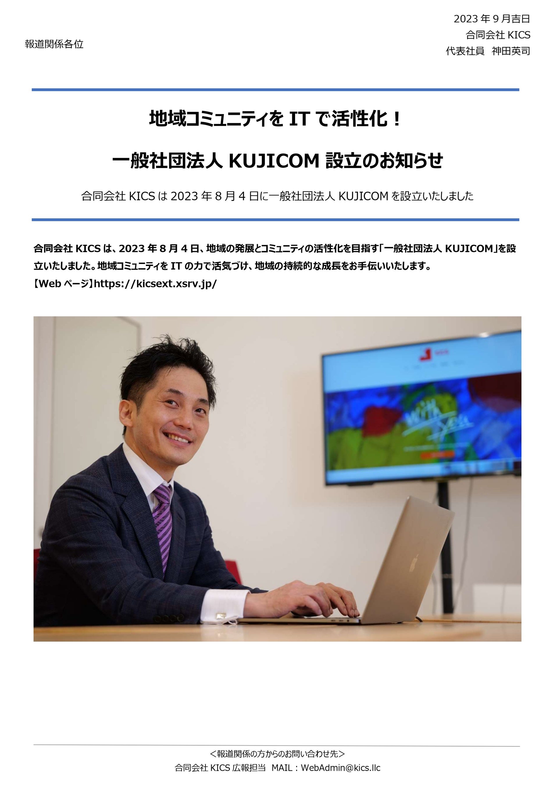 合同会社KICS は、2023 年8 月4 日、地域の発展とコミュニティの活性化を目指す「一般社団法人KUJICOM」を設