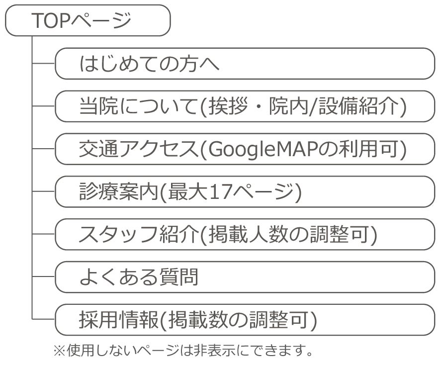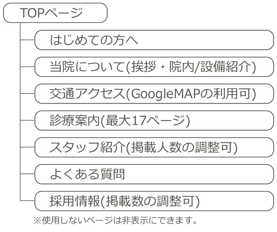 診療科目なども定型文があるので充実したホームページが簡単に作成できます。