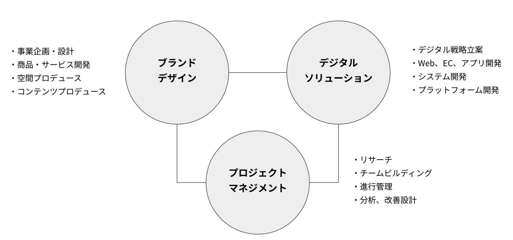 ブランドや事業の丁寧な設計とデジタルでの拡張、それを着実に推し進めるプロジェクト管理を強みとします。