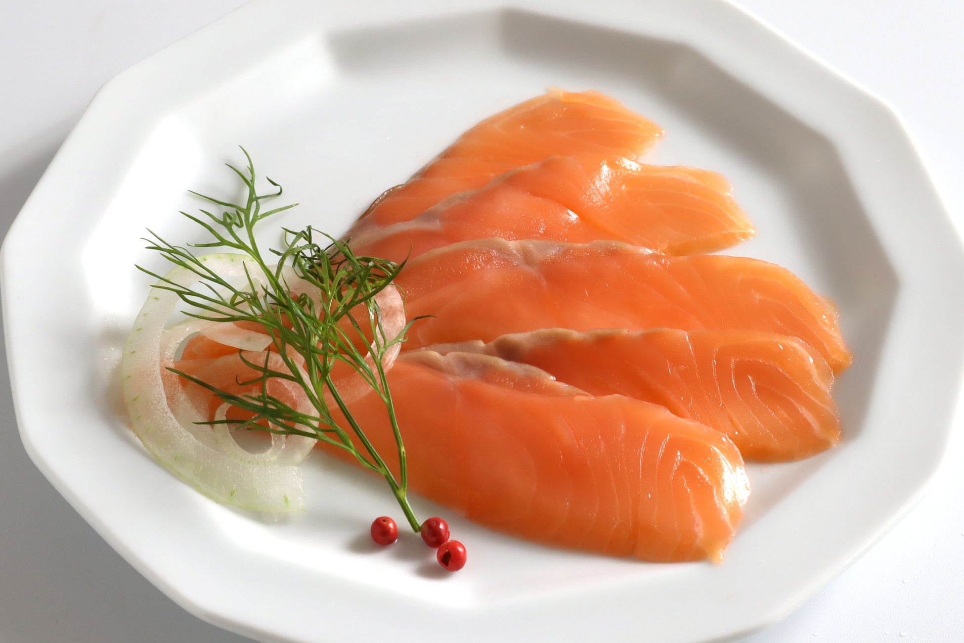 英国王室御用達のスコティッシュサーモンです。さらっとした脂のりと、引き締まった身が特徴です。空輸された新鮮なスコティッシュサーモンを、熟練の燻製職人が手作業で、丁寧に冷燻製に仕上げました。半世紀にわたり使い続けた燻製窯にしみ込んだ燻香と、桜チップの香ばしい煙で、奥深い香りとお刺身の雰囲気を残した、しっとりとした食感に仕上がっています。保存料や着色料などの添加物は一切使用していません。