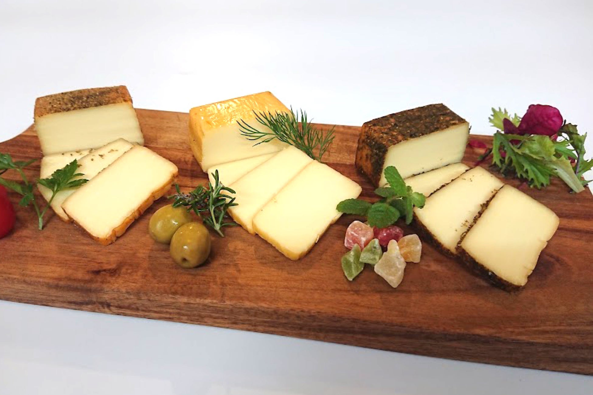 Kaoriの燻製品16種:紅鮭、キング、真鯛、かんぱち、帆立、カジキ、うなぎ、さば、真つぶ貝、明太子、ムール貝、天使の海老(冷燻製・温燻製)、スモークチーズ(プレーン・山椒味・七味唐辛子味)