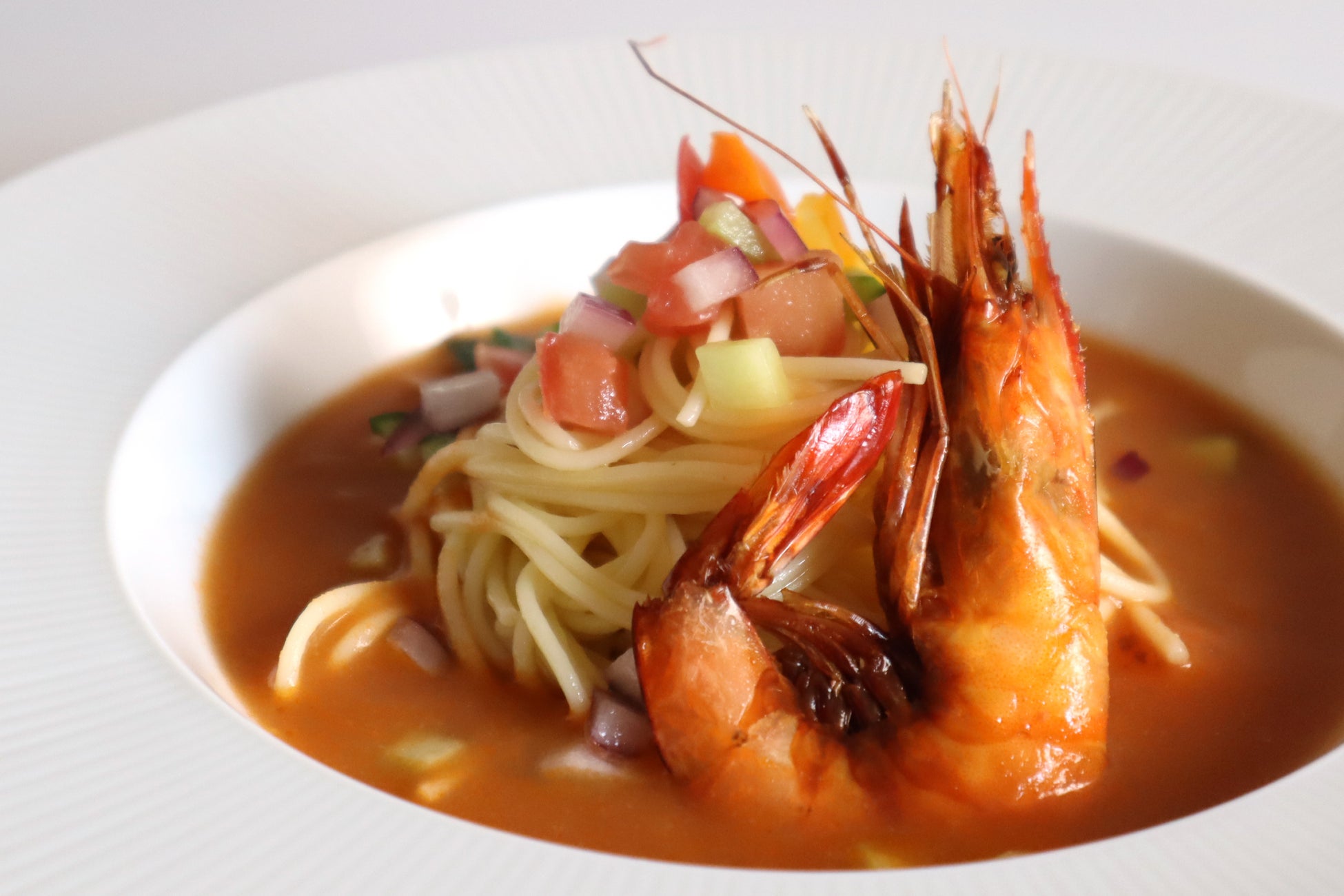 某有名ホテルの総料理長が、スモークサーモンに合うドレッシングとして考案しました。甘味と酸味のバランスがよく、スモークサーモンの味を損ないません。サーモン以外の魚介燻製にもよく合うため、当社ECサイト等でも販売しています。