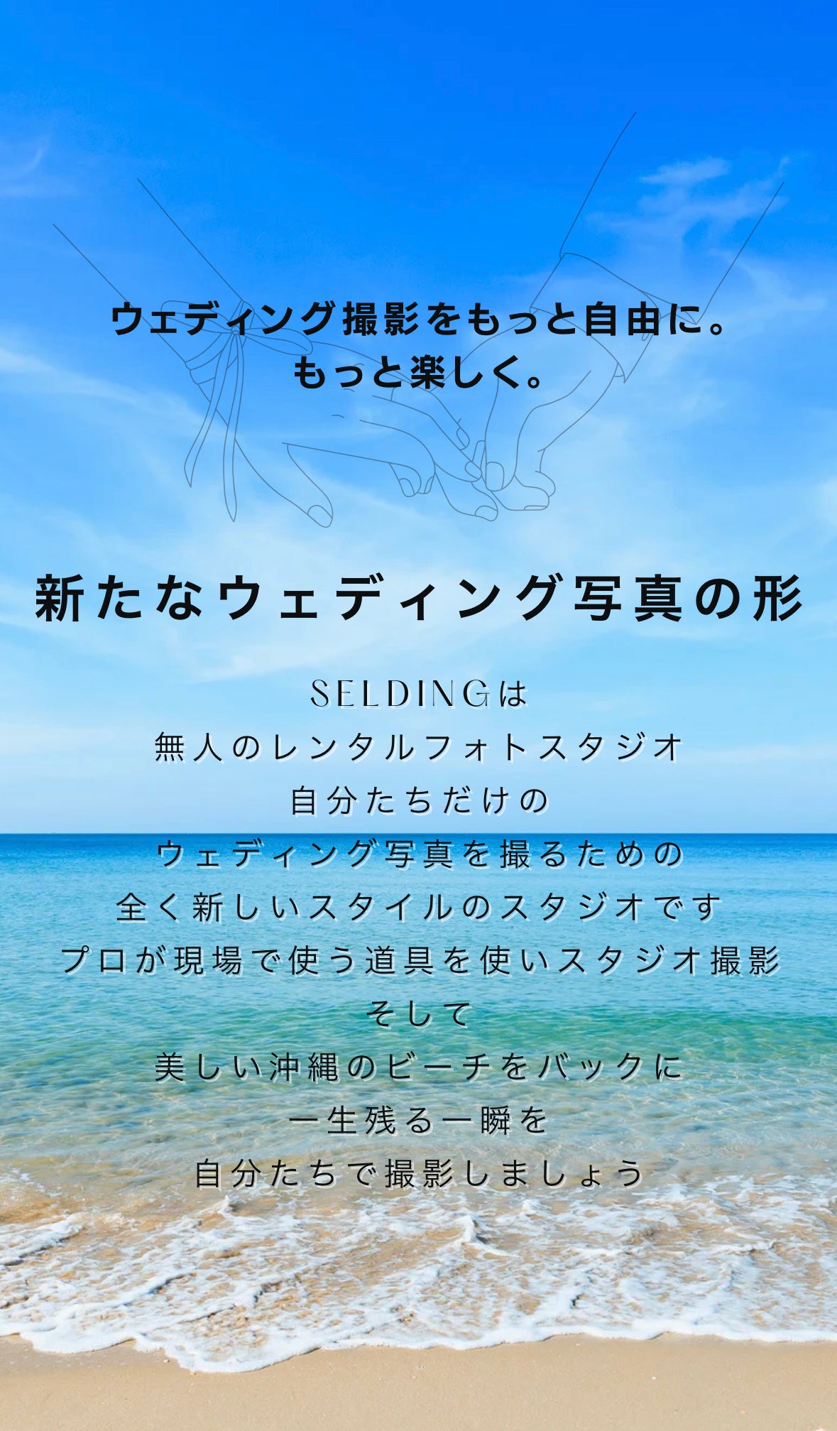 ウェディング業界に革命!海から徒歩0分沖縄唯一のウェディング専門無人のセルフフォトスタジオオープン!なんとドレスやタキシードレンタルも含めてウェディング撮影が9800円〜!※2023年8月1日自社調べ