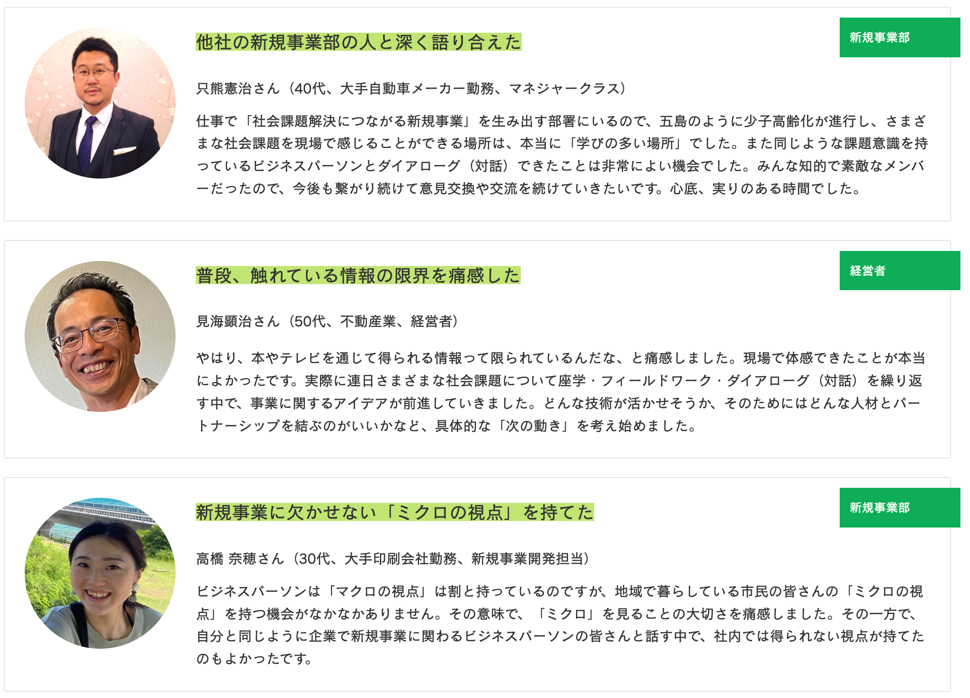 また今回の開催期間中、人口減少が急速に進む日本の未来について本気で考えたい全国のビジネスパーソンに向けた特別コンテンツ「人口減少の中に希望を見出す本気の社会科見学『2040年の日本を体感しにいこう。2』五島列島タイムワープ・スタディー(以下略:本気の社会科見学)」を開催いたします。