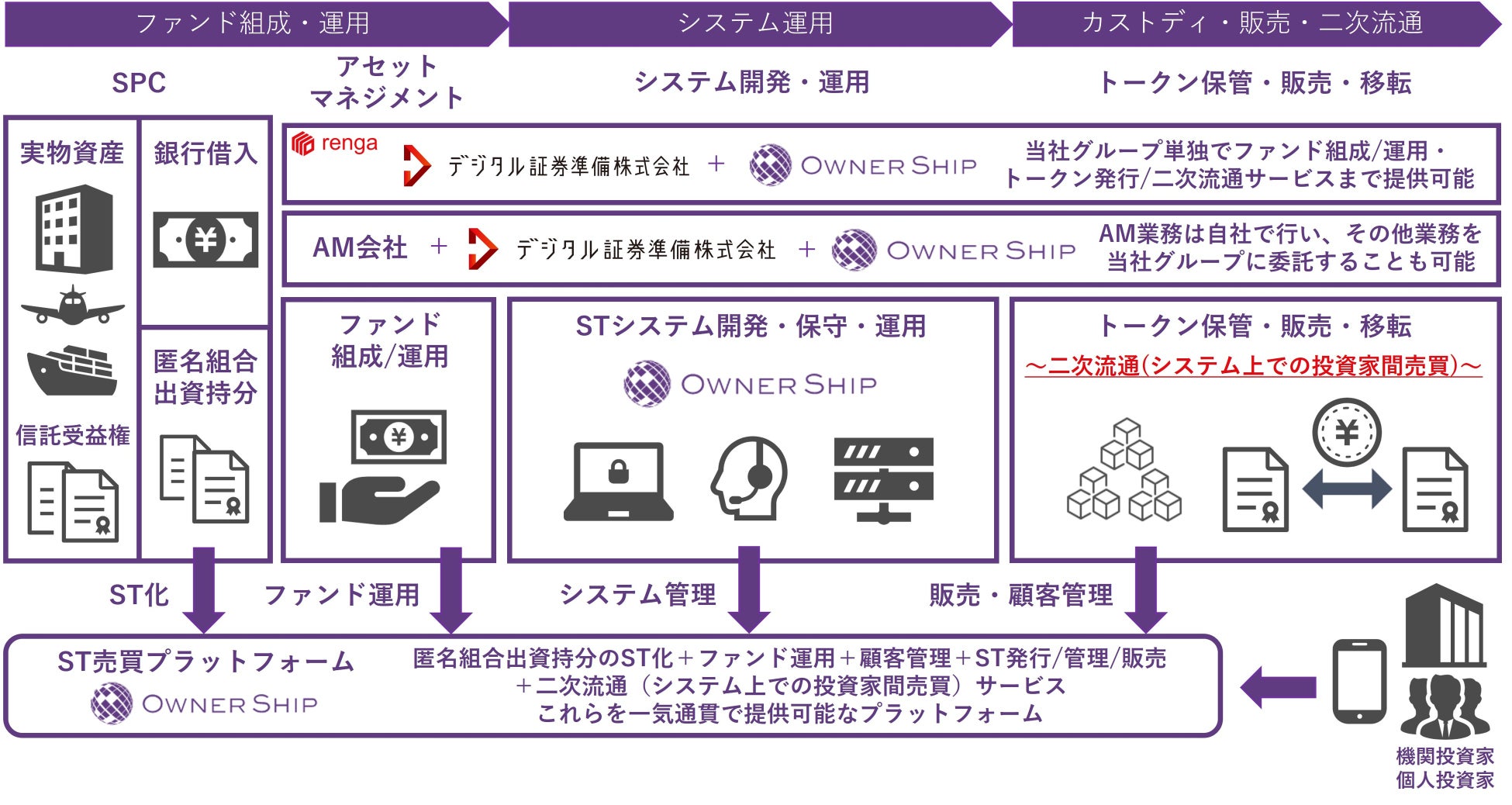 (*6) OwnerShipは、匿名組合出資持分をトークン化したセキュリティ・トークンの発行、保管、販売、二次流通(システム上での投資家間売買)に至るまでの全ての手続きをデジタル完結できるセキュリティ・トークン売買プラットフォーム。