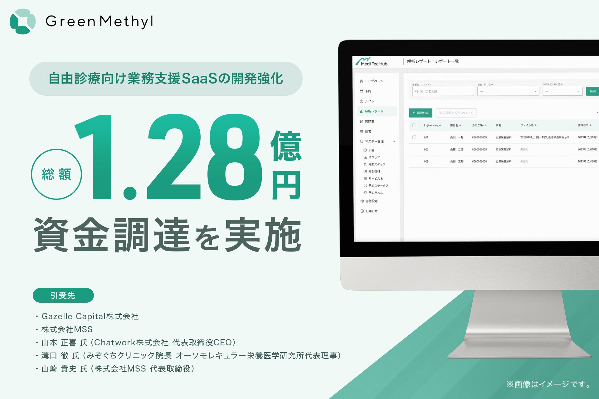 自由診療向け業務支援SaaS「メディテックハブ」の開発強化に向け、総額1.28億円の資金調達を実施