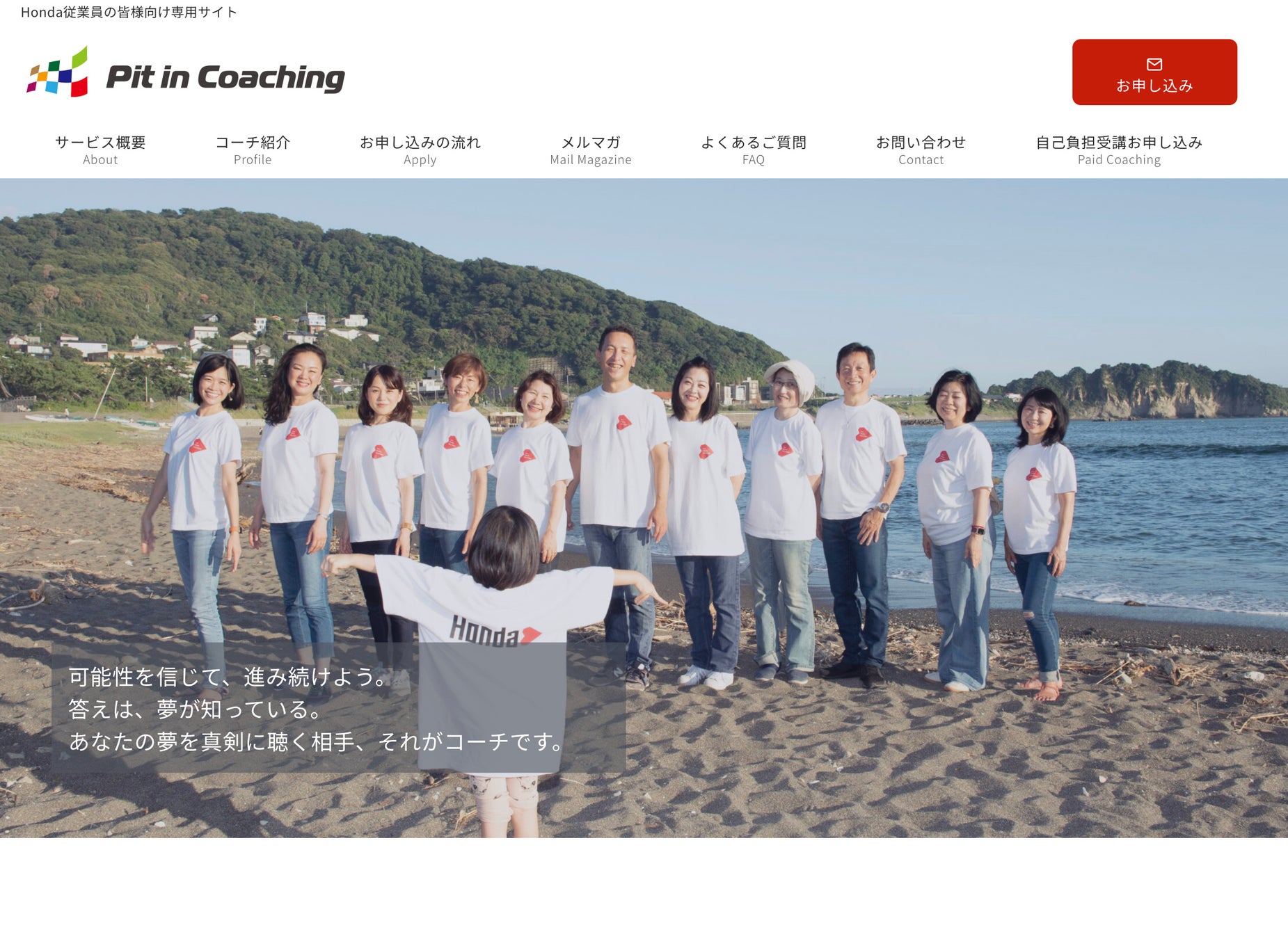 Hondaのコーチングは、「すべての従業員に”ピットイン”の機会を」という意味を込めて、「Pit in Coaching」と名付けられました。せかはじは、「Pit in Coaching」の専用サイトを立ち上げ、Web上で申し込み、予約日時の変更ができるシステムも提供しています。