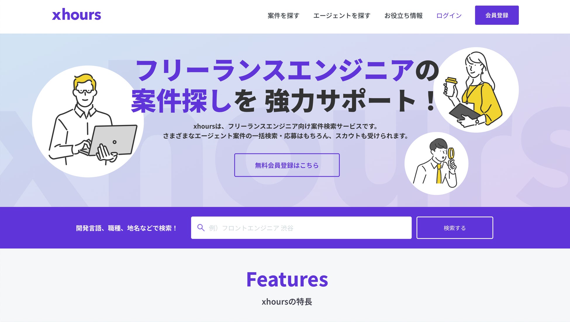 ITフリーランスはxhoursを活用し、開発言語や単価、勤務地、業界、稼働日、働き方など、細かな条件で横断検索し、案件応募することができます。