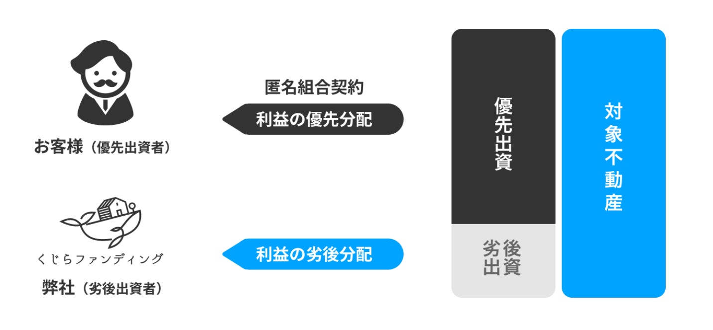 くじらファンディングでは、お客様の出資元本の安全性を高めるため、優先劣後システムを採用しております。