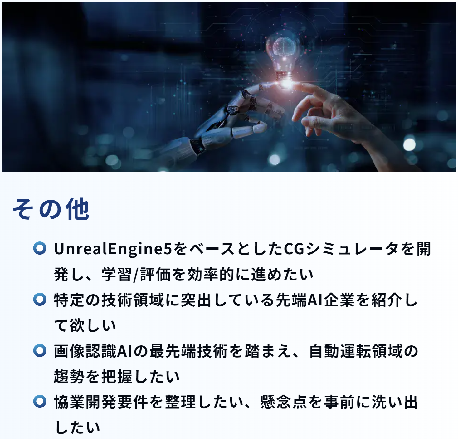 解決したい課題への解決方法をピンポイントで合わせ、開発コストの低減および技術開発/製品開発の効率化を実現します