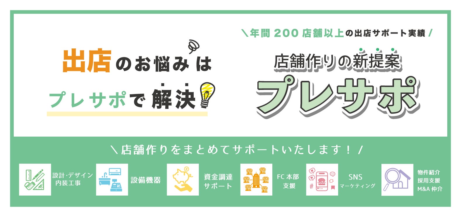 新規開業はお任せ!出店サポートに強い【プレサポ】で理想のお店を実現!