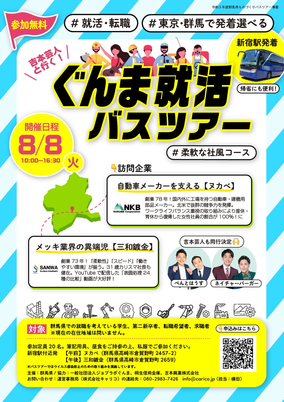 【参加無料】話題の『吉本芸人と行く!ぐんま就活バスツアー』次回以降のお知らせ 🚌💨