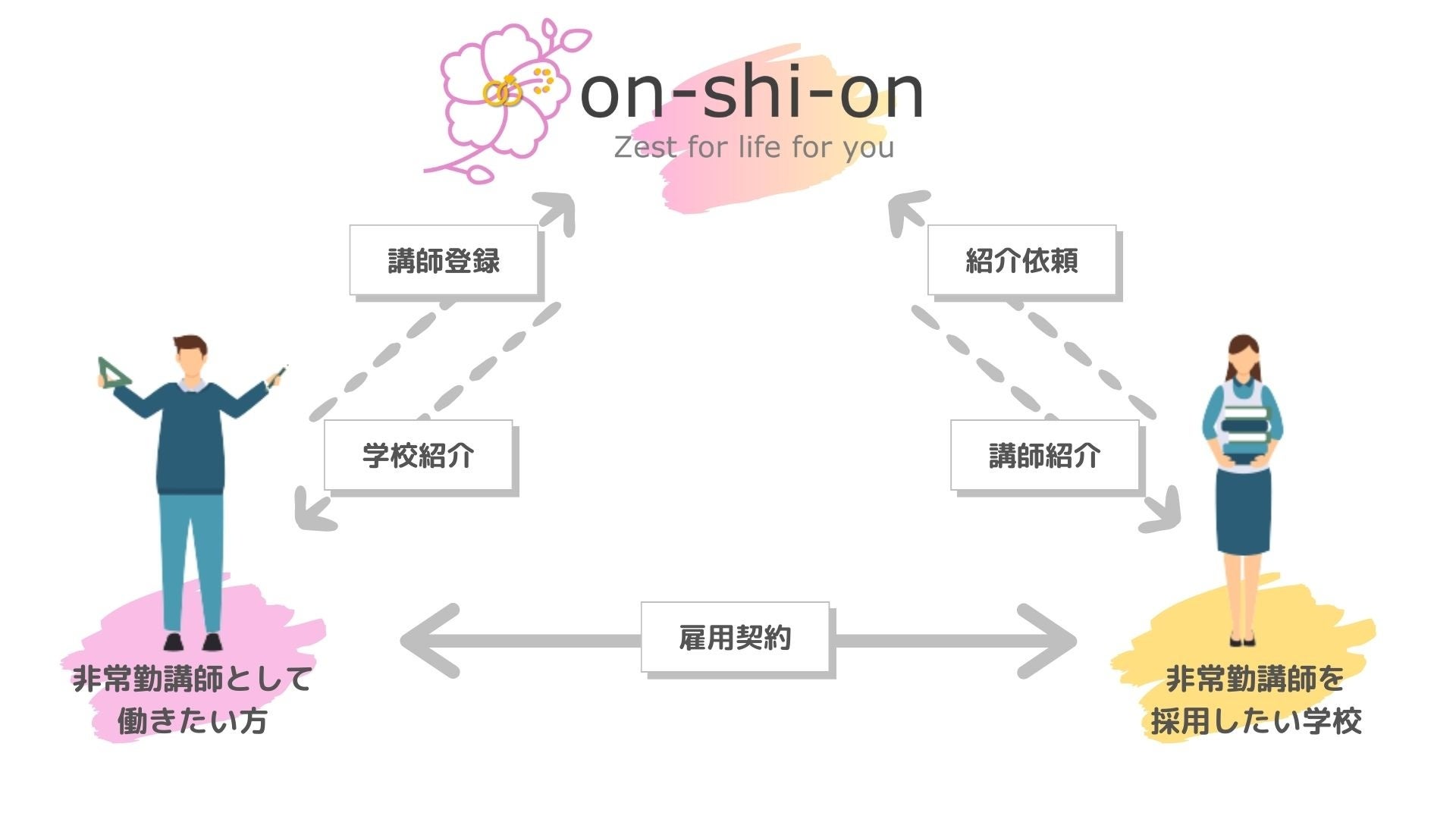 on-shi-on株式会社は、「自由に幸せに生きるフリーランスの先生を通じて、子どもと、子どもに関わる全ての人の生きる力を育む教育と世界をつくる」をミッションに、講師・学校・企業向けのサービスを提供している教育ベンチャー企業です。本リリースは、新規事業である非常勤講師の人材紹介サービスに関するものですが、講師登録以外の学校法人による講師採用のお問い合わせや企業・メディアによるお問い合わせ、また当社の採用応募につきましては、コーポレートサイトのお問い合わせページからご連絡いただきますようお願い申し上げます。