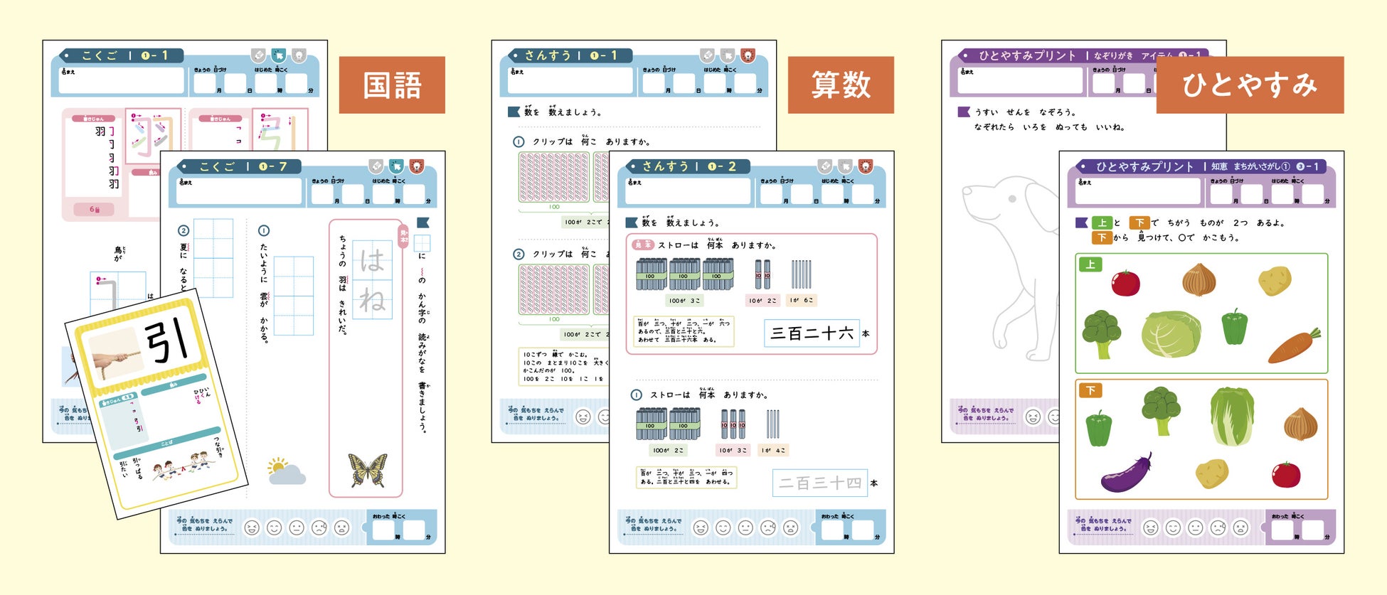 毎日の学習量はお子さまに負担にならない枚数にし、お子さまが「できそう」「できた!」を繰り返すことで、無理のない学習習慣へとつなげます。