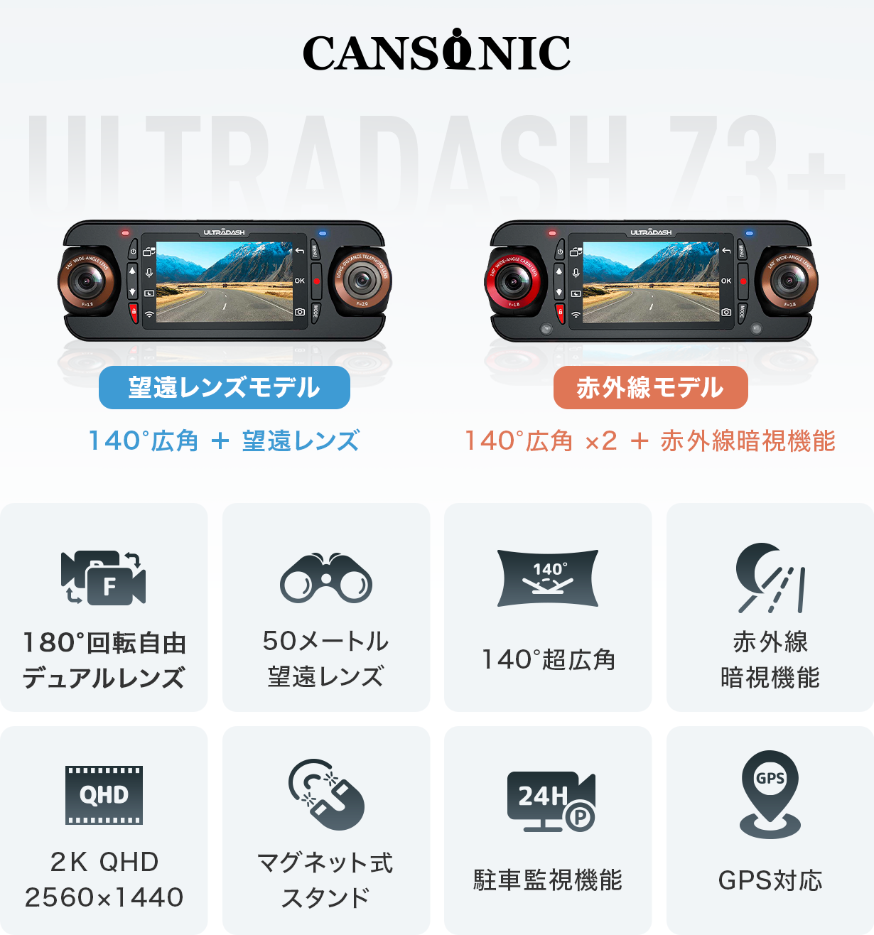 ドライブレコーダーの専門家Cansonic(キャンソニック)から近くと遠くを同時に撮影したい方に望遠レンズモデル。昼夜問わず、車外と車内を同時に撮影したい方に赤外線モデル。自分のドライブスタイルに合わせて選べる2モデルを同時公開しました。