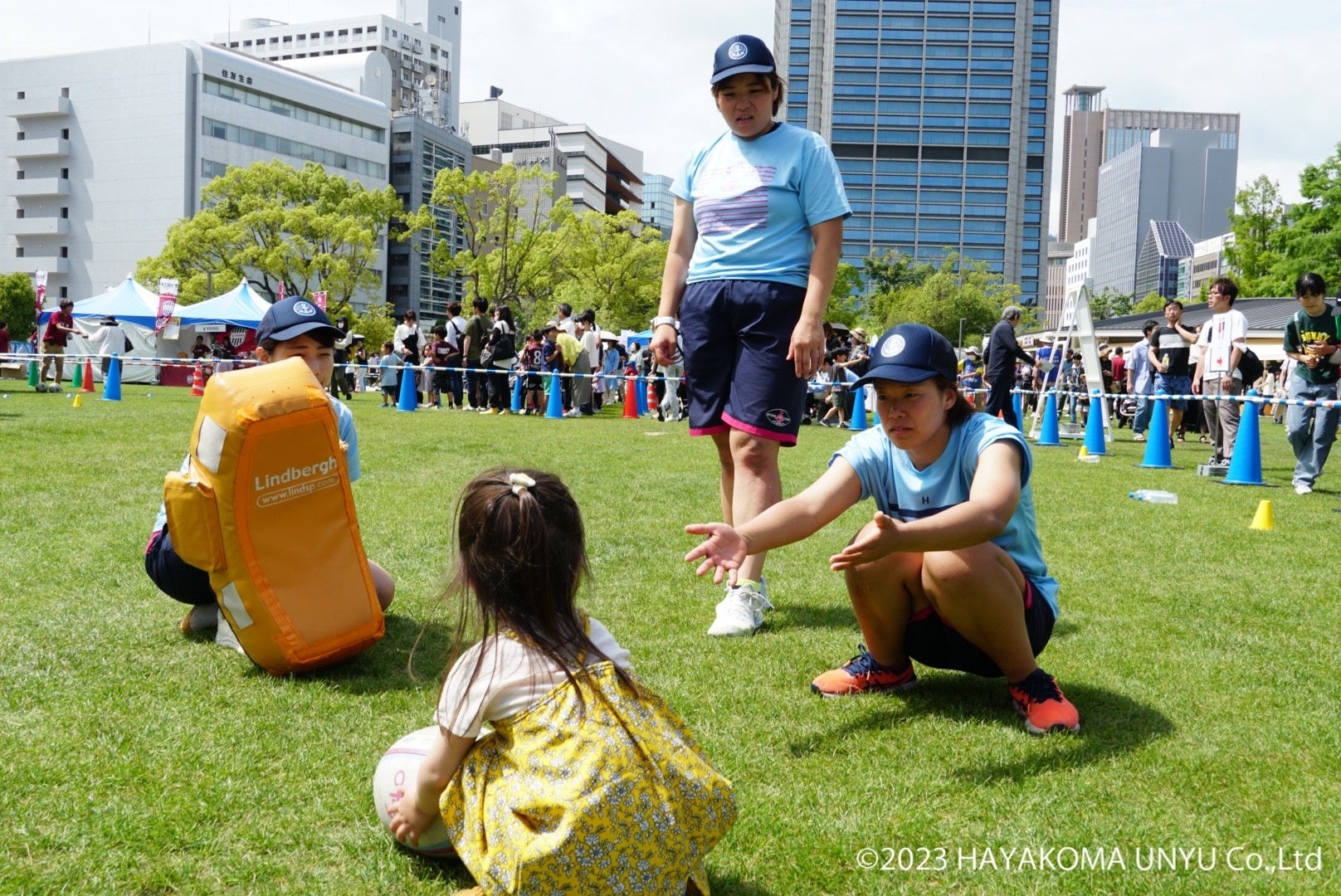 そして、スポーツ体験コーナーでは、弊社が全面支援している女子ラグビークラブチーム「神戸ファストジャイロ」が、8月5日(土)15:00~17:00、生田神社えびす参道で、コベルコ神戸スティーラーズとともに「パスターゲット」を実施します。ラグビー未経験の方も、年齢に合わせて選手がサポートします。神戸シーバス団扇(うちわ)もプレゼント!!