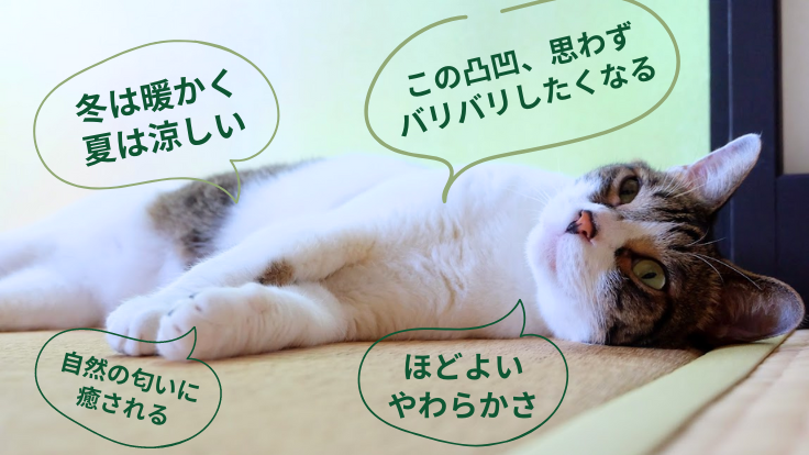 「マンションで飼っている猫の爪とぎ対策が大変」そんなお悩みに「い草の新しいカタチ」を提案します。