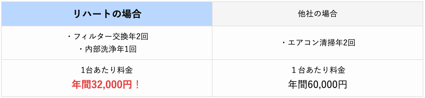 リハートの業務用エアコンフィルター定期交換サービスの料金