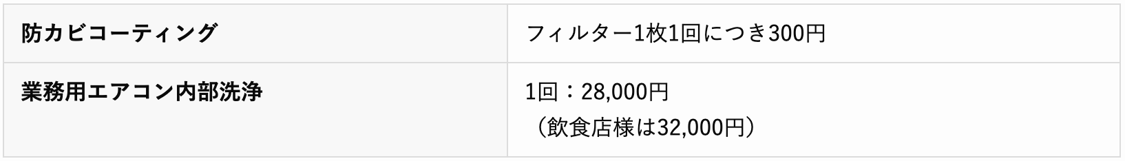 また、フィルターに防カビコーティングを施す処置や業務用エアコンの内部洗浄を以下のオプションにて提供しております。