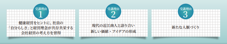 当プログラムは、株式会社イヴケアが監修する、企業トップと人事・労務責任者が対象の先行エグゼクティブ研修です。 近江商人精神の「三方よし」の一つ「売り手よし」に「自分らしく働く」をなぞらえ、そのマインド醸成を雇い手 (経営者)・働き手(社員)の2つの視点から学び、企業の持続可能な Well-being 戦略をワークショップで検討します。今回は、近江商人発祥の地、五個荘にある150余年の歴史的建造物が学び舎。近江文化の息づかいを感じさせる町並みと旧商家の非日常空間で、新しい情報・新しい発想・新しい出会いを求めてのご参加をお待ちしています。