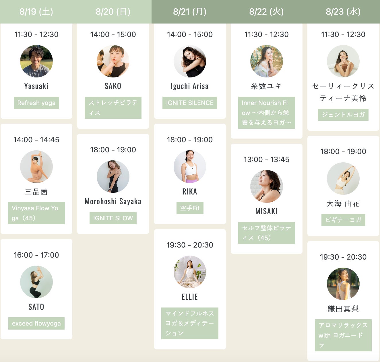 期間:2023年8月19日(土)〜8月23日(水)