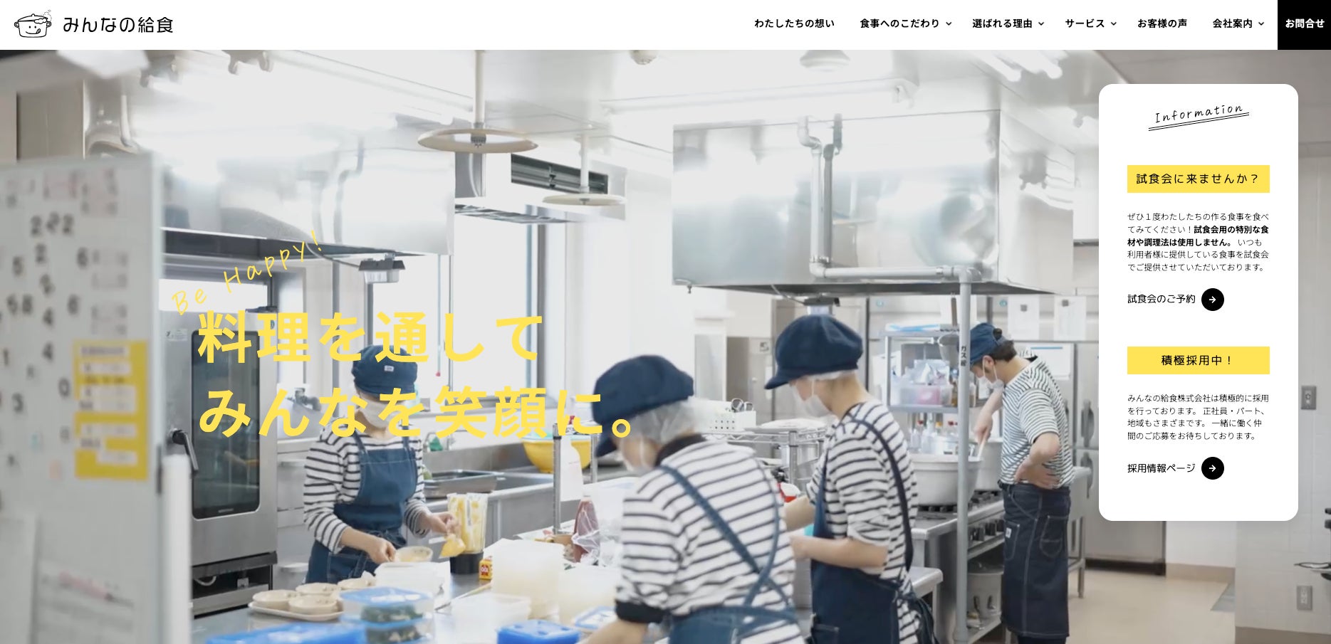 私たちが提供する食事が、誰もが幸せになる「みんなの給食」であることを常に意識し、日々忘れないようにこの社名をつけました。