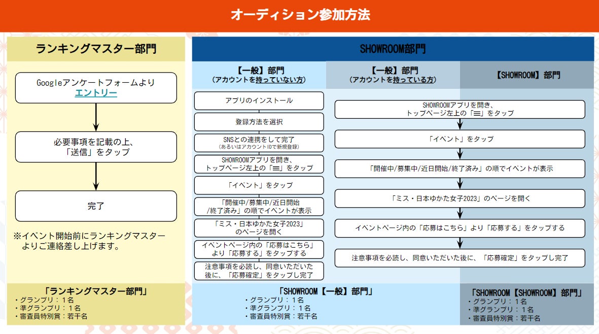 ※ランキングマスターとSHOWROOMの両方を、それぞれの部門を別にエントリー頂くことも可能です。