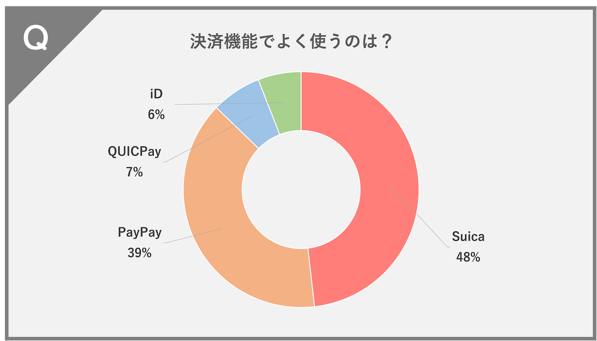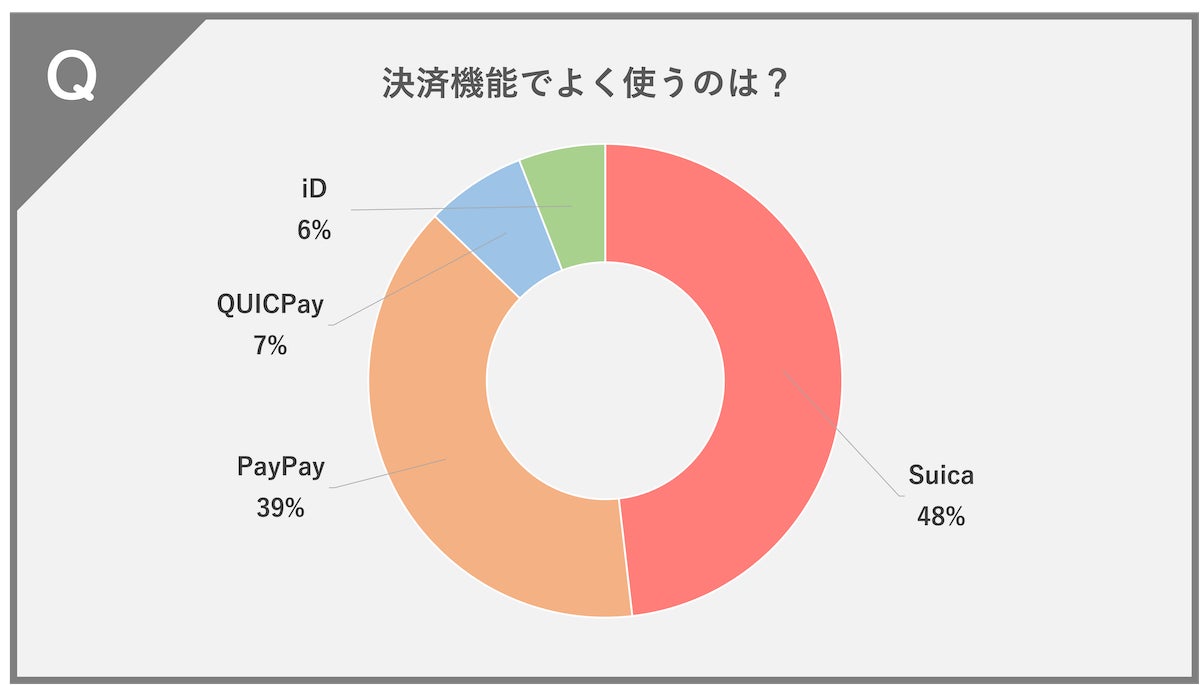 Suica(48%)、PayPay(39%)、QUICPay(7%)、iD(6%)という結果になりました。