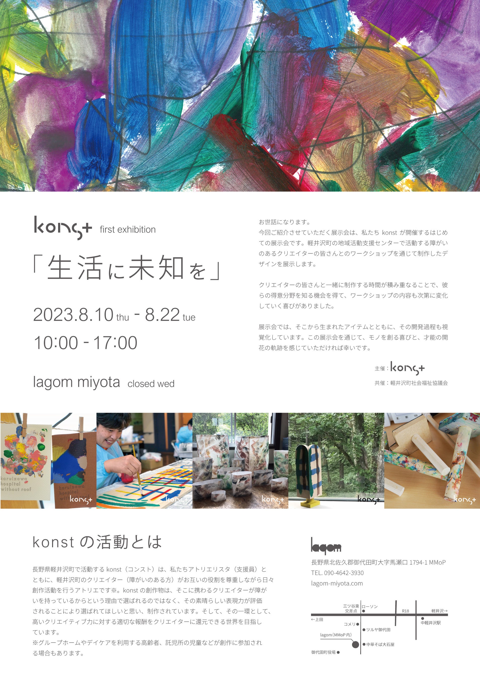 軽井沢町の障がいのあるクリエイターとアート団体konstによる展示会「生活に未知を」を入場無料で開催|御代田町MMoP内のインテリアショップ「lagom」にて8月10日(木)から22日(火)まで