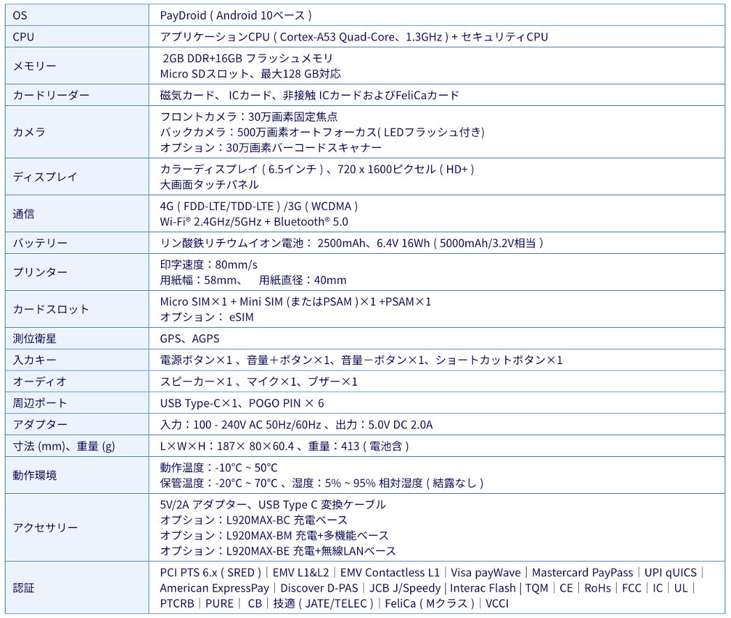 Pax Japan株式会社(本社: 東京都千代田区、代表取締役社長: 常山宏彰、以下Pax Japan)は、新機種としてモバイル決済端末 PAX A920MAXの日本モデルをリリースします。