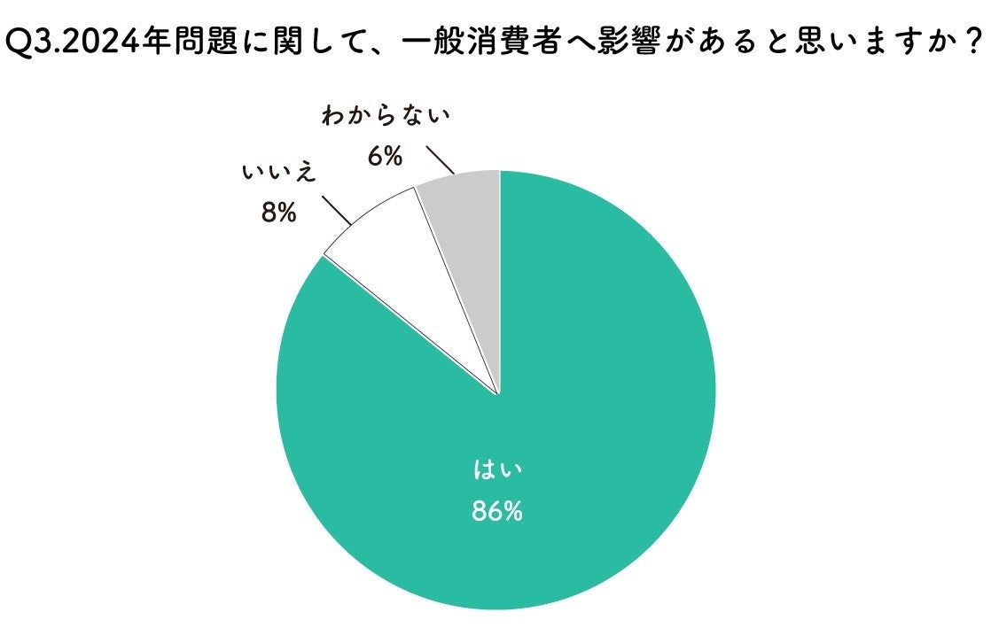 ・「2024年問題」は、自分自身の生活へ影響を及ぼすと考えている人が86%!