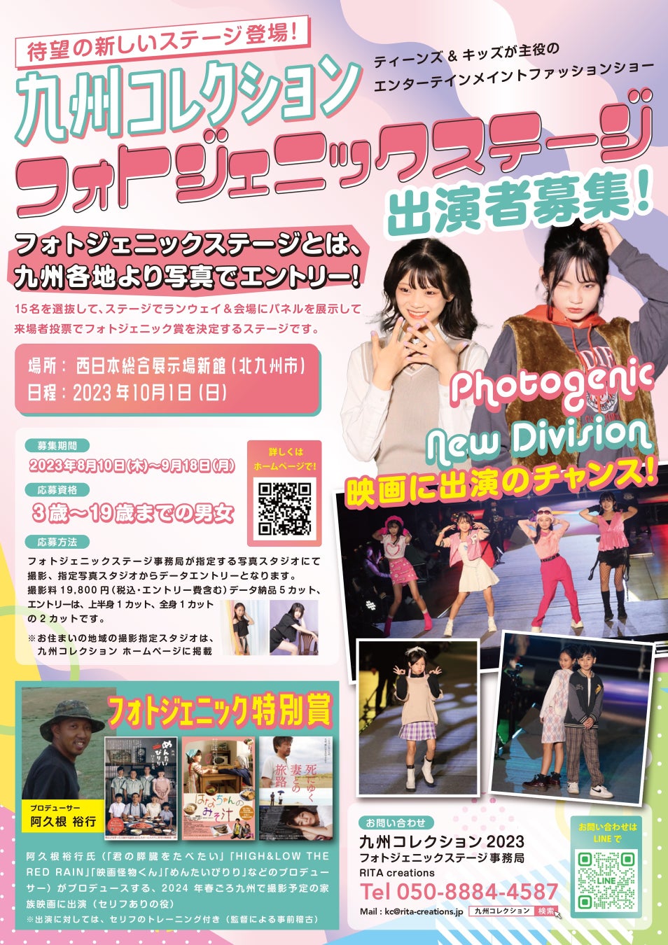 今年も西日本総合展示場(北九州市)で開催されるティーンズ&キッズ向けの大型総合ファッションショー『九州コレクション』にフォトジェニックステージが誕生しました! ガールズ&ボーイズの応募お待ちしてます!