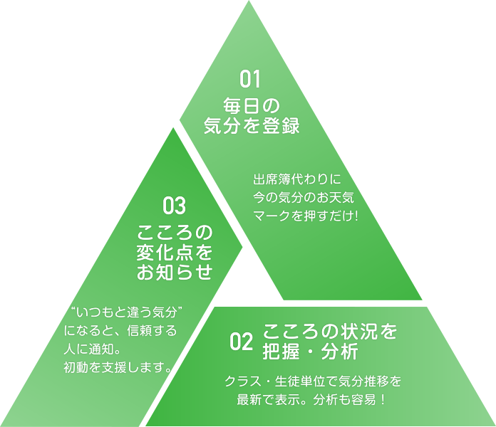 気分変調サインを担任の先生方やスクールカウンセラーなどに通知設定可能!