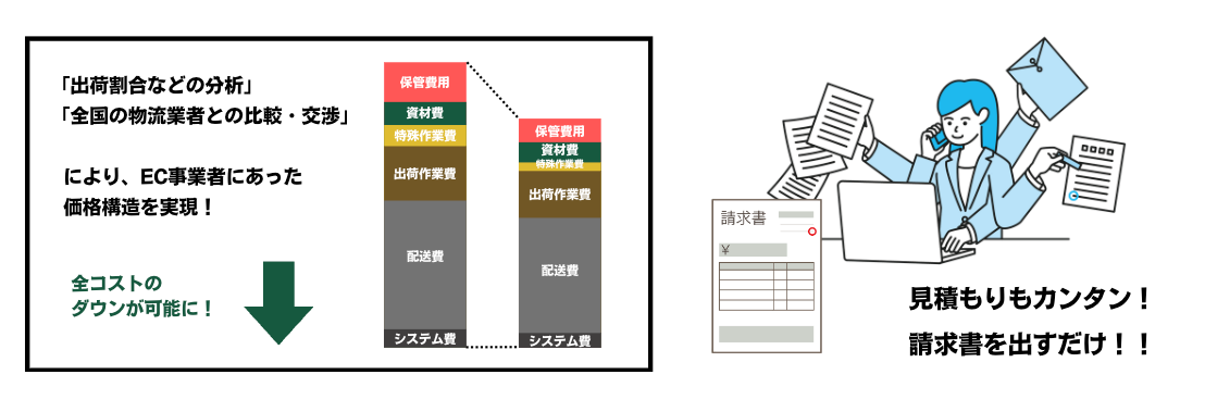 特に、EC事業者の売上を堅調にするための要素である「見えない物流課題とコストの可視化」、「物流の最安コストの提案」、「ビジネス拡大のための選択肢をすべて網羅する」など物流とマーケティングの隙間を埋めるためのサービス開発を進めています。