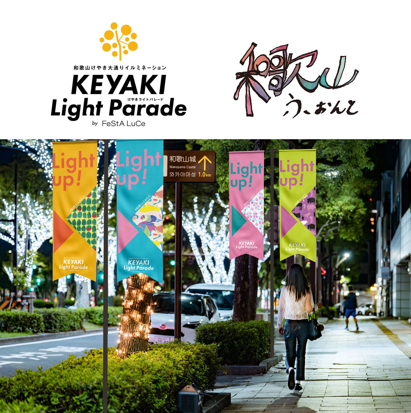 「KEYAKI LIGHT PARADE」は、光のけやき大通りをきっかけに和歌山のみんなで一緒にワクワクする街を作っていこう、という想いと、「Light Up!」を合言葉に、隣にいる大切な人、お客さま、自分たちの街を輝かせたい。という想いが込められています。