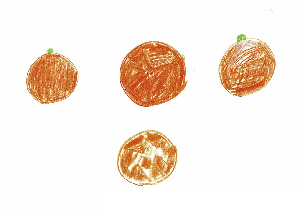 和歌山といえば「みかん」を描いた絵をパターン化していきます。