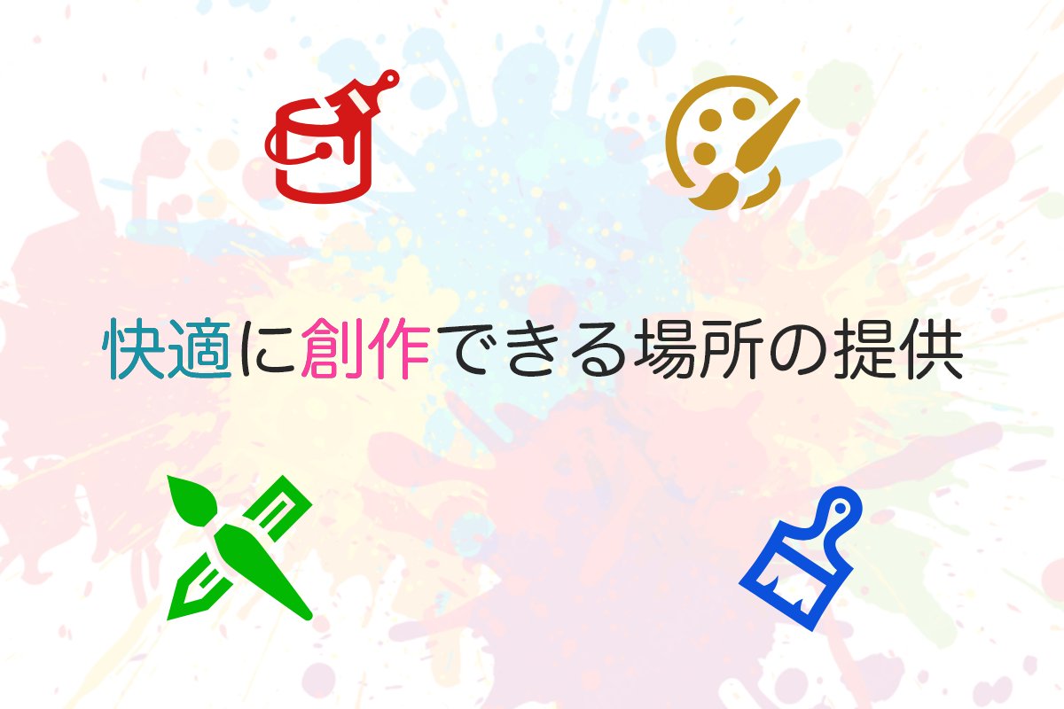 アートギャラリー&シェアアトリエ「あとりえーる・ぎるど」として、快適に創作できる場所の提供を心がけています。