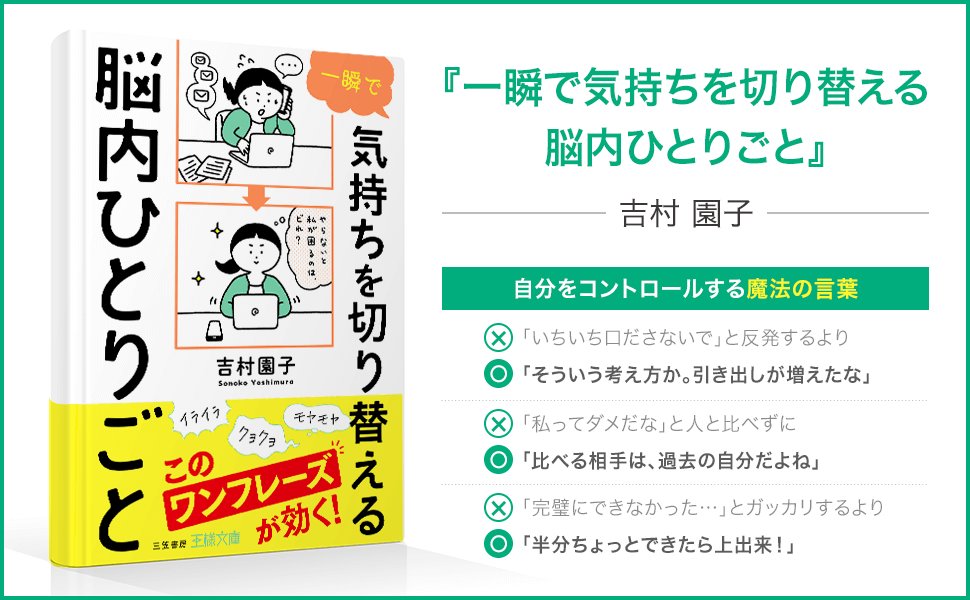 心をラクに、日々をポジティブに『一瞬で気持ちを切り替える脳内ひとりごと』 8/30三笠書房より出版
